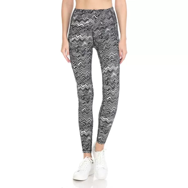 Leggings Depot High Waist Printed Athletic Pants for Women with Pockets for Yoga, Workout, Running, Hiking(Full Length Chevron Graphite)