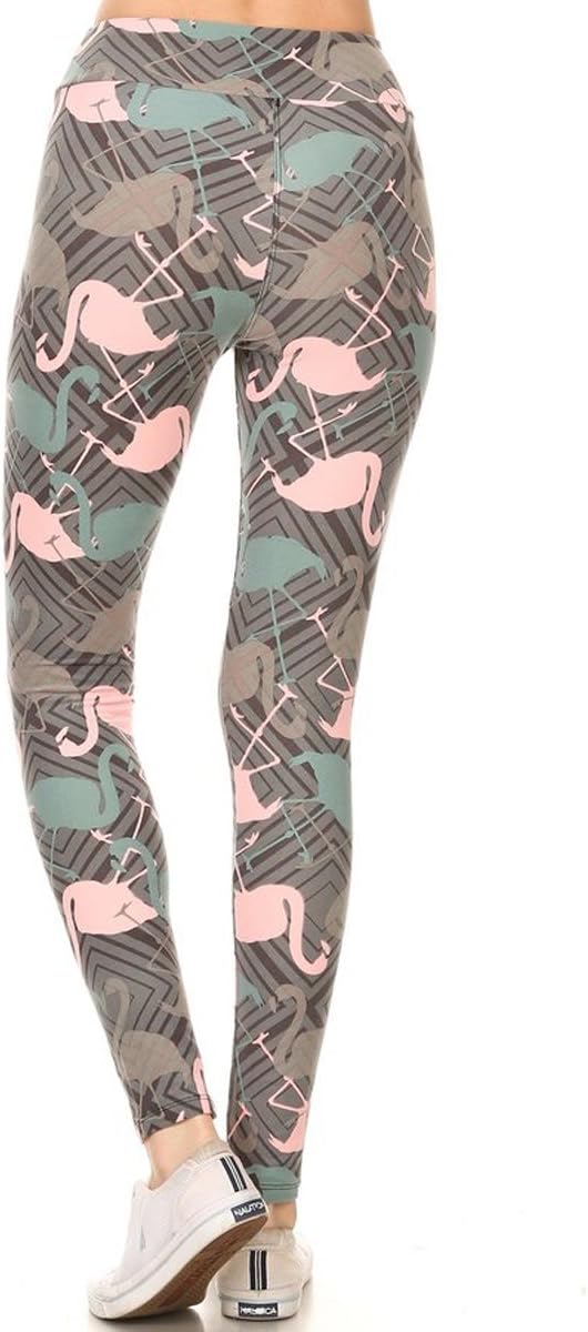 Leggings Depot High Waisted Checkered & Animal Print Leggings for Women – Regular, Plus, 1X3X, 3X5X(3″ Yoga Flamingo Mode)
