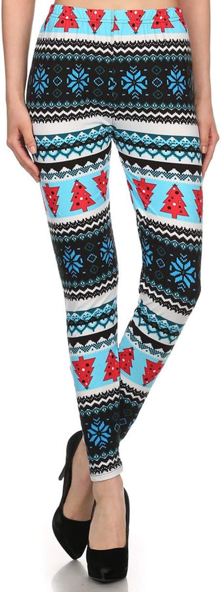 Leggings Depot High Waisted Novelty Christmas Holiday Print Leggings for Women (Available in Plus Size)(Full Length Reindeers and Plaids)