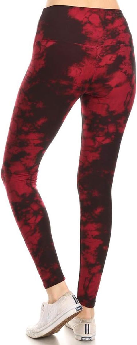 Leggings Depot High Waisted Tie Dye & Fabric Print Leggings for Women – Reg, Plus, 1X3X, 3X5X(Full Length Cranberry Punch)