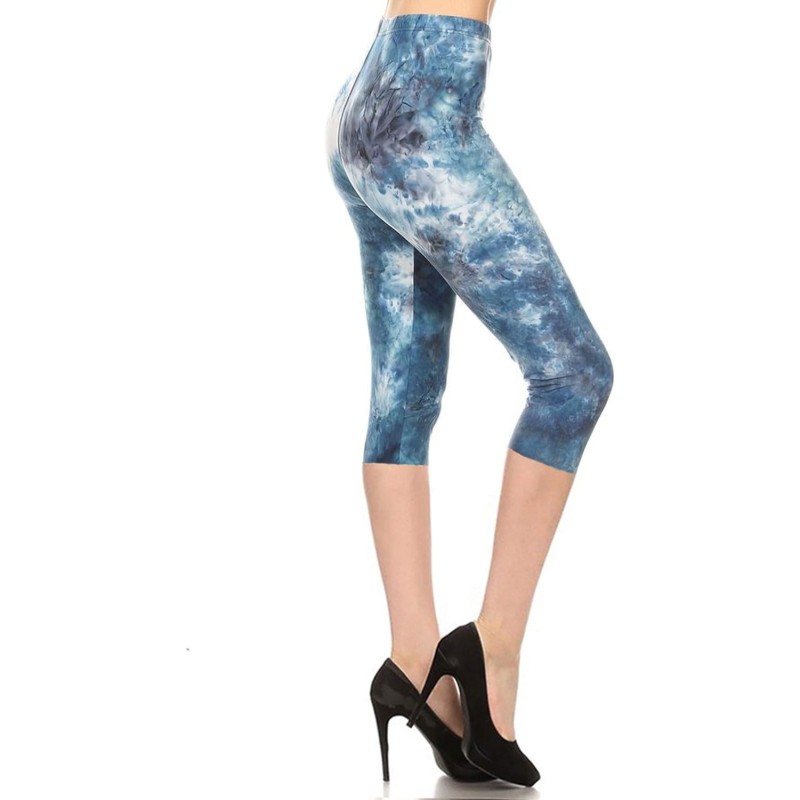 Leggings Depot High Waisted Tie Dye & Fabric Print Leggings for Women – Reg, Plus, 1X3X, 3X5X(Capri Steel Tie Dye)