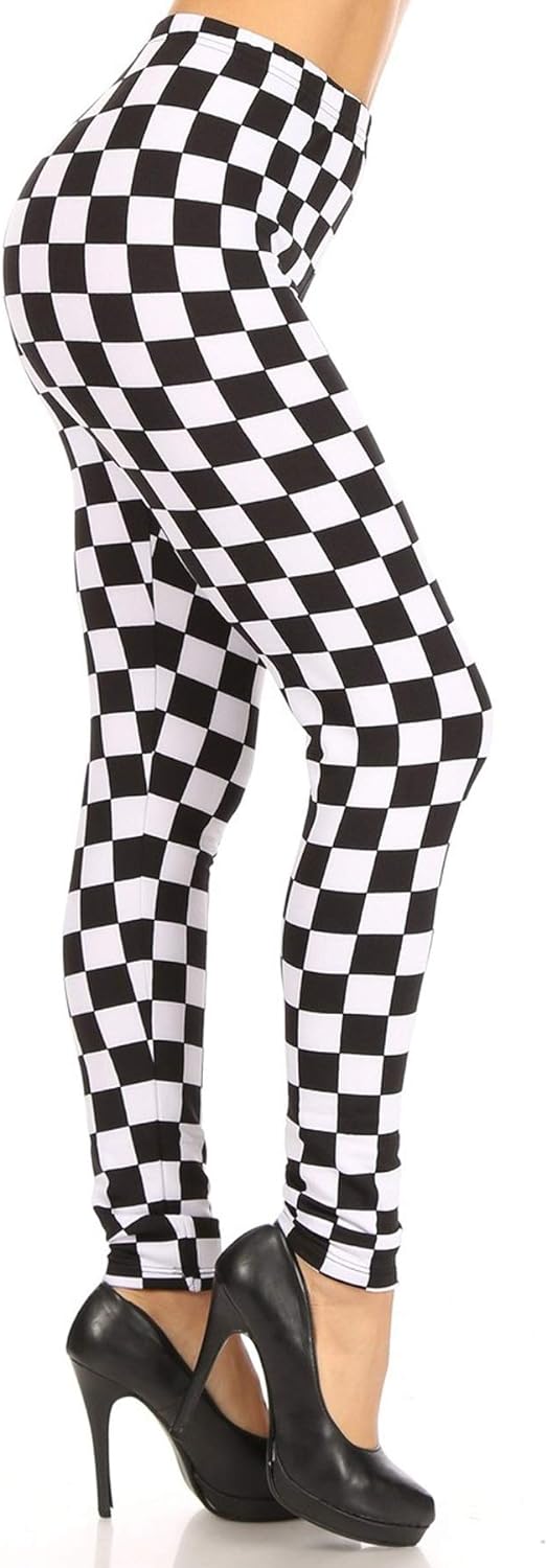 Leggings Depot High Waisted Warm Fleece Lined Leggings Women Tights(Fleece-Print B&w Checkered)