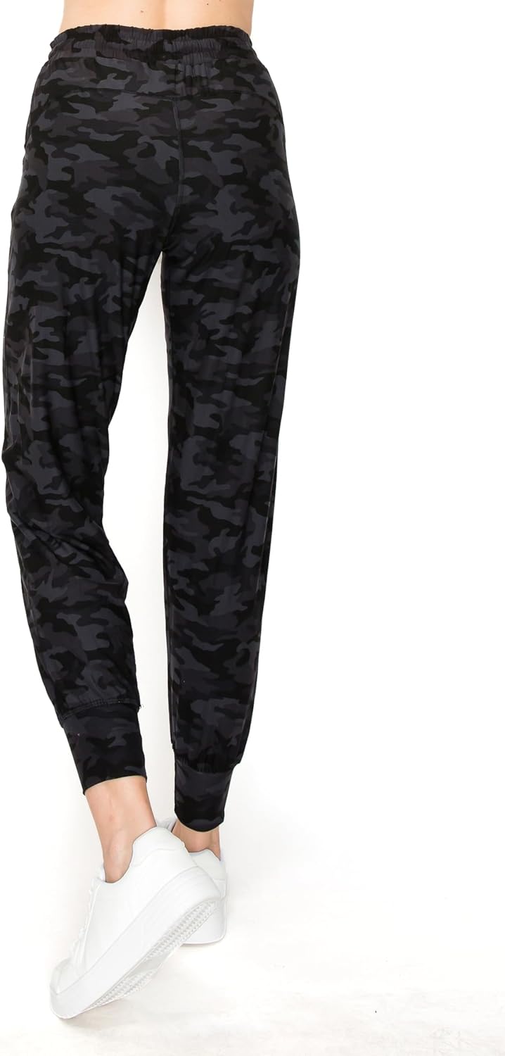 Leggings Depot Women’s ActiveFlex Slim-fit Jogger Pants with Pockets Athletic Joggers for Yoga, Workout, Lounge, Running(With Drawstring Black Camouflage)