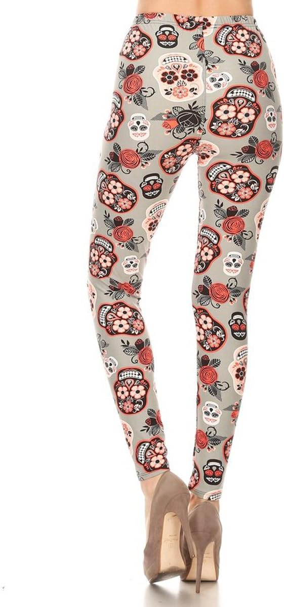 Leggings Depot Women’s High Waisted Buttery Soft Skull & Halloween Print Leggings (Available in Plus Size)(Full Length-Skull Chiffon Skulls)
